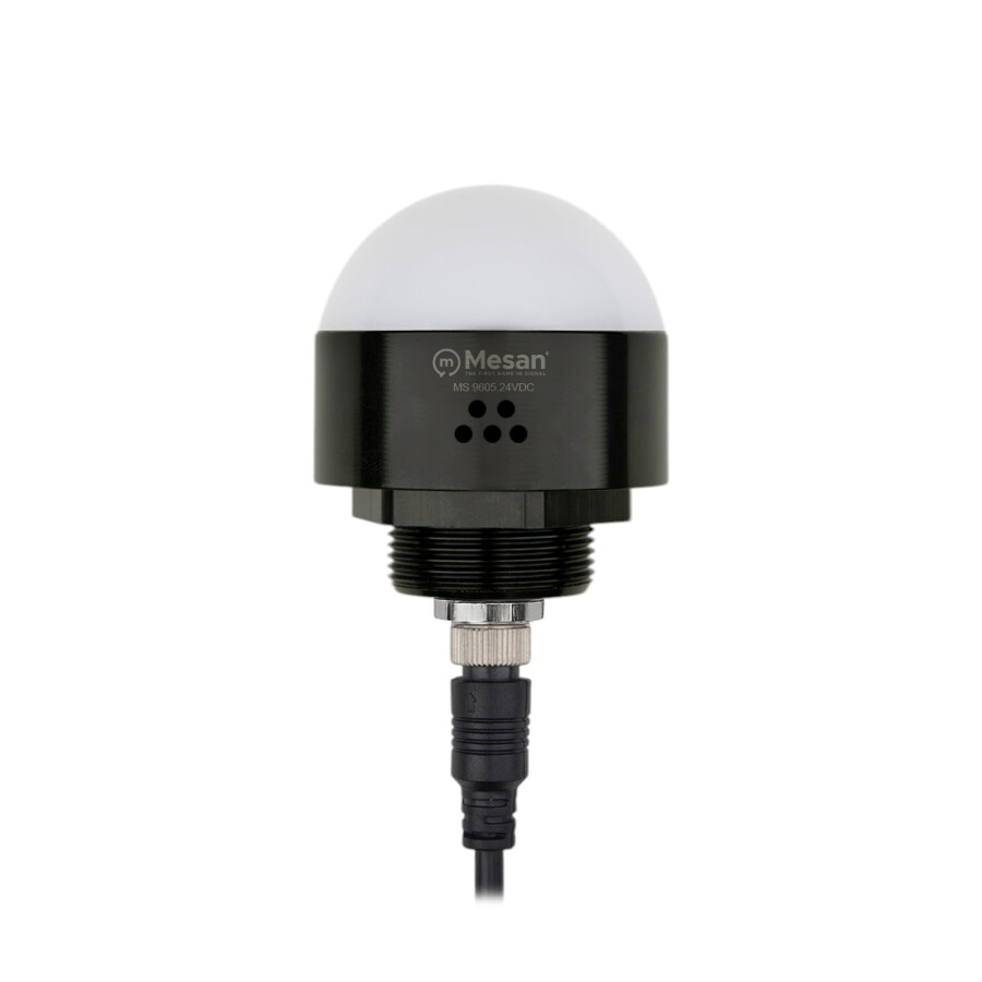Ø50 M30 Somun Bağlantılı LED İndikatör M12 Konnektör RGY Buzzer Siyah Gövde