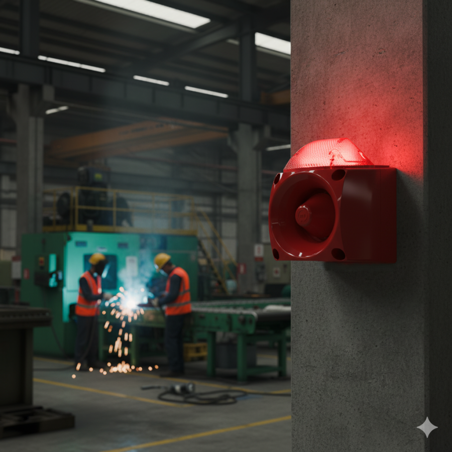 Multifonksiyon LED Endüstriyel Ağır Sanayi Yüksek sesli siren 20W magnetodinamik siren ünitesiyle donatılmıştır. 127dB (1m) 43 Ton, kuru kontaklı ABS Gövde PC Lens Kırmızı Gövde Rengi IP65